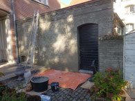 Muur gecementeerd en voorgevel voorzien van knipwerk, heusden